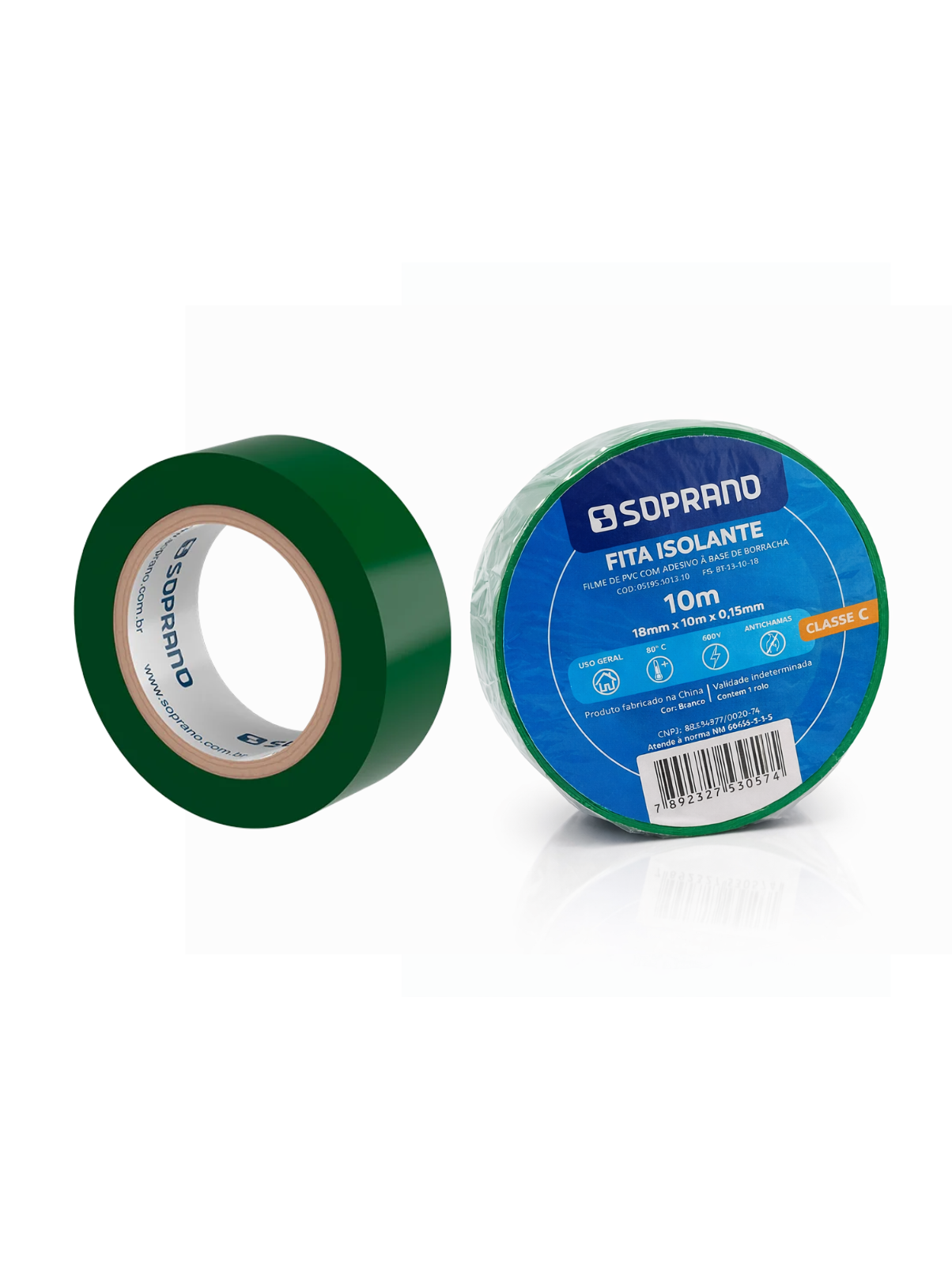 A Fita Isolante 18mm x 10m Verde da Soprano é indicada para isolamento e acabamento de emendas elétricas em instalações residenciais, comerciais e automotivas.